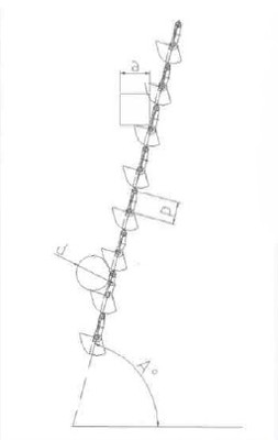 Die Kette, an dem die einzelnen Filterblöcke verschraubt sind, dreht in Vorwärtsrichtung , wenn der Wasserstand vor dem Rechen größer als hinter dem Rechen ist oder nach einem zeitlichen Intervall.